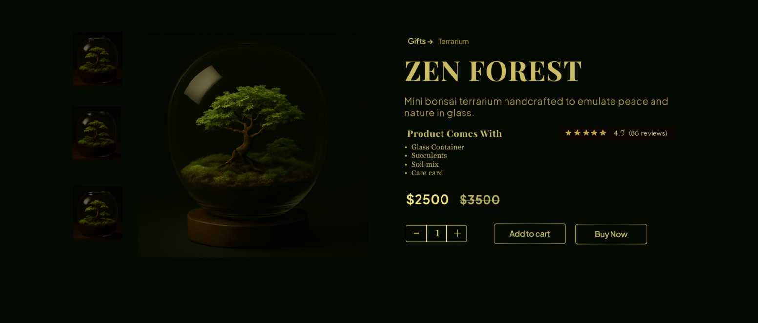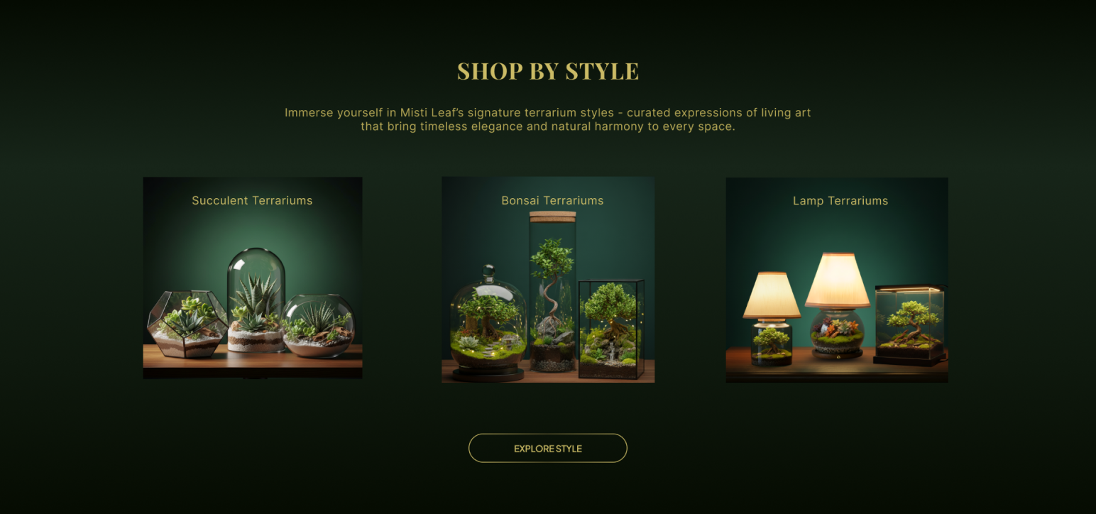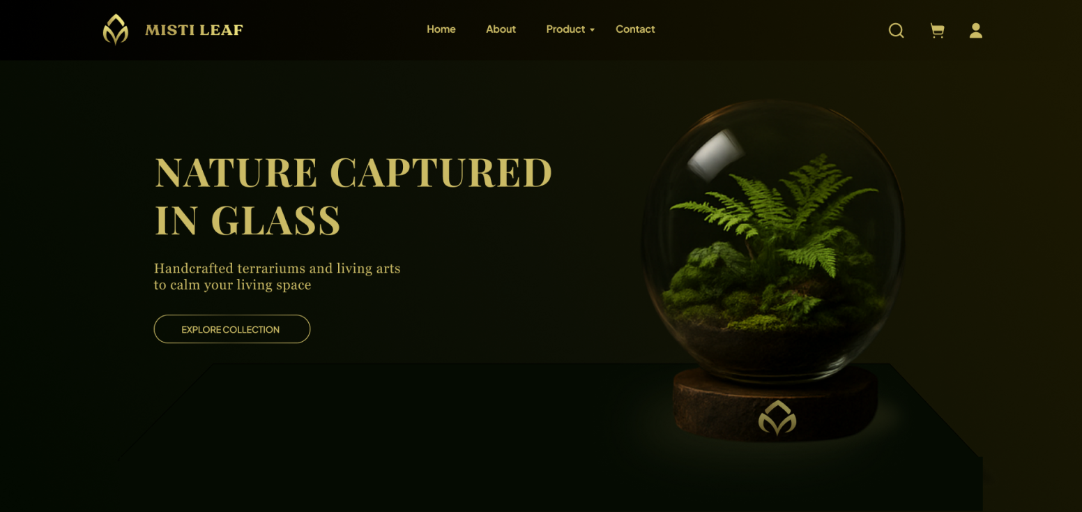 I designed the end-to-end UI for Misti Leaf, a luxury e-commerce platform specializing in premium terrariums. The project involved crafting a comprehensive and cohesive user experience across 34 unique pages.