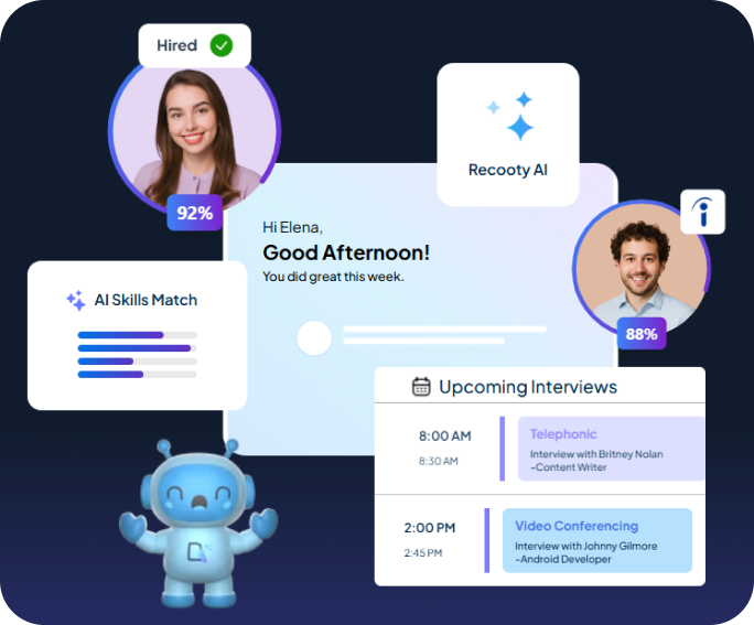 By developing Recooty’s Webflow CMS platform and futuristic UI, I drove a significant boost in brand performance. Transitioning to a clean, semantic Webflow architecture optimized site speed by 40%, while the modern visual language led to a 25% increase in user session duration. The custom mascot—now the face of our Interview Chat Model transformed the candidate experience, increasing interaction rates by 30% and turning a standard software process into an engaging brand journey.